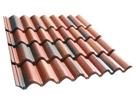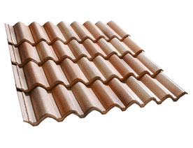 Las tejas curvas son elementos de perfil bastante plano presenta una o mas, generalmente dos acanaladuras, que facilitan la escorrentía. Esta inspirada para lugares donde las lluvias y las nieves son mas abundantes.